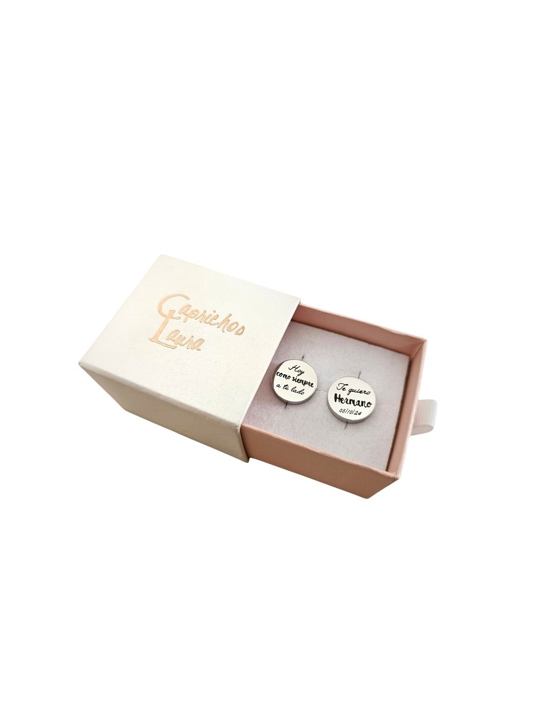 Haz que cada detalle cuente con estos elegantes gemelos personalizables. Graba la frase que tú elijas: una fecha especial, unas iniciales, una palabra significativa o un mensaje que solo tú y esa persona entenderéis.