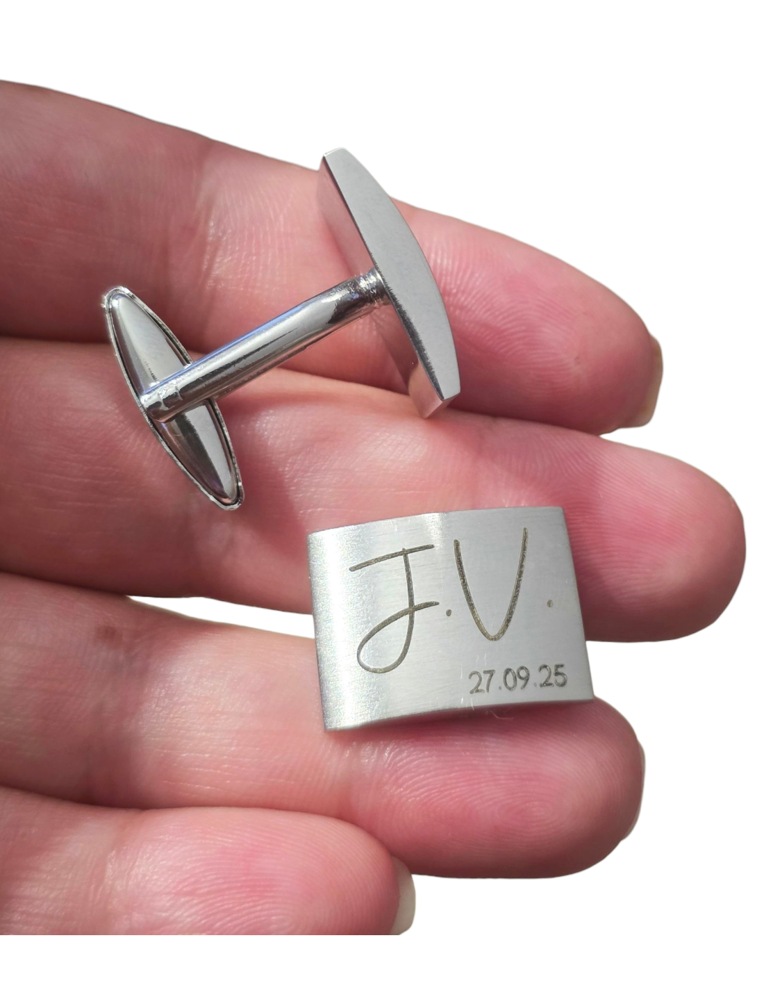 Dale un toque de distinción a tu estilo con estos elegantes gemelos con iniciales grabadas. Diseñados para quienes valoran los detalles, combinan la sobriedad del diseño clásico con el encanto de la personalización discreta.