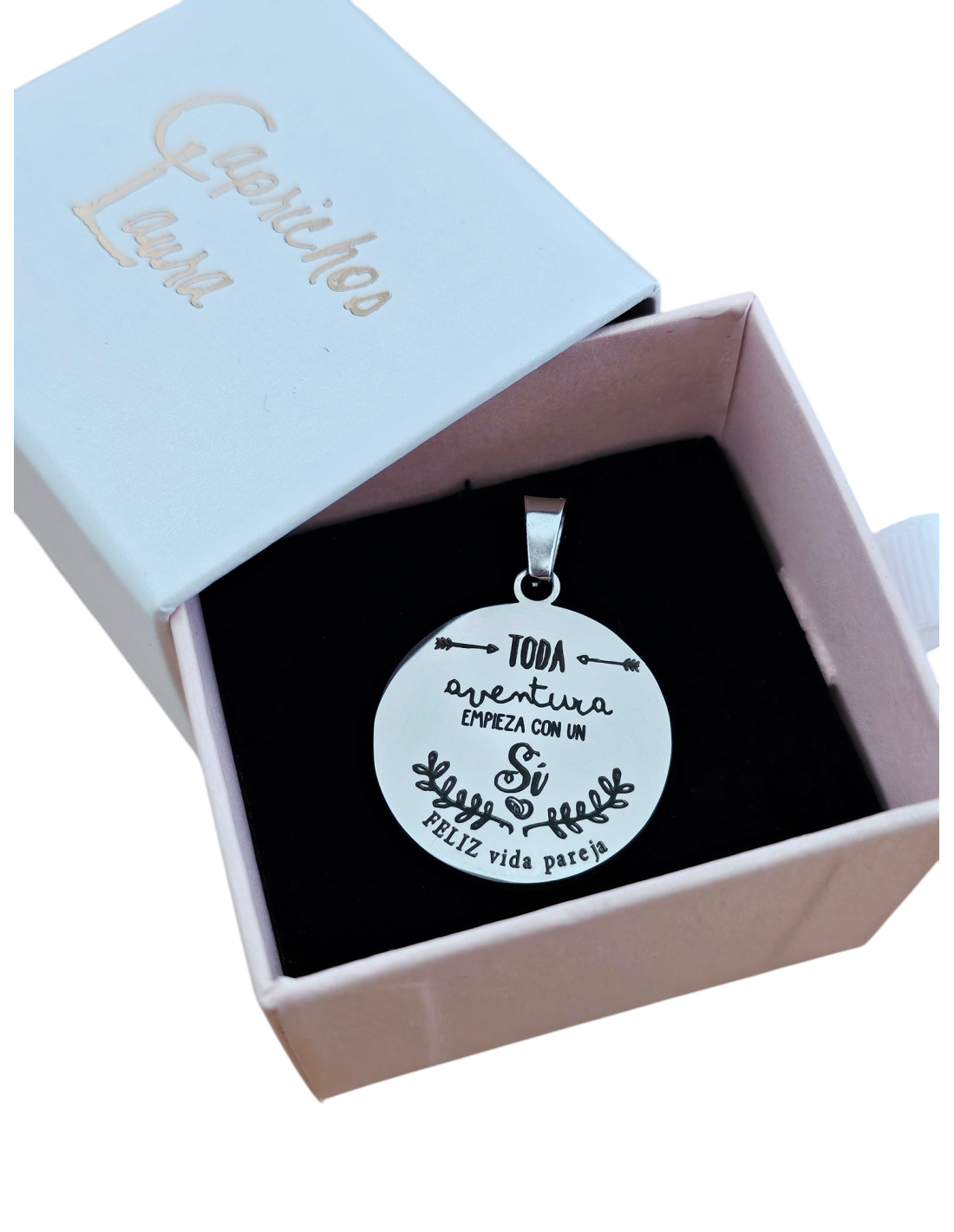 Lleva un símbolo único contigo con esta medalla que ya cuenta con un diseño especial en una cara. En la parte posterior, puedes añadir un texto personalizado para que tenga un significado aún más personal: un nombre, una fecha, una dedicatoria o un mensaje que te inspire.